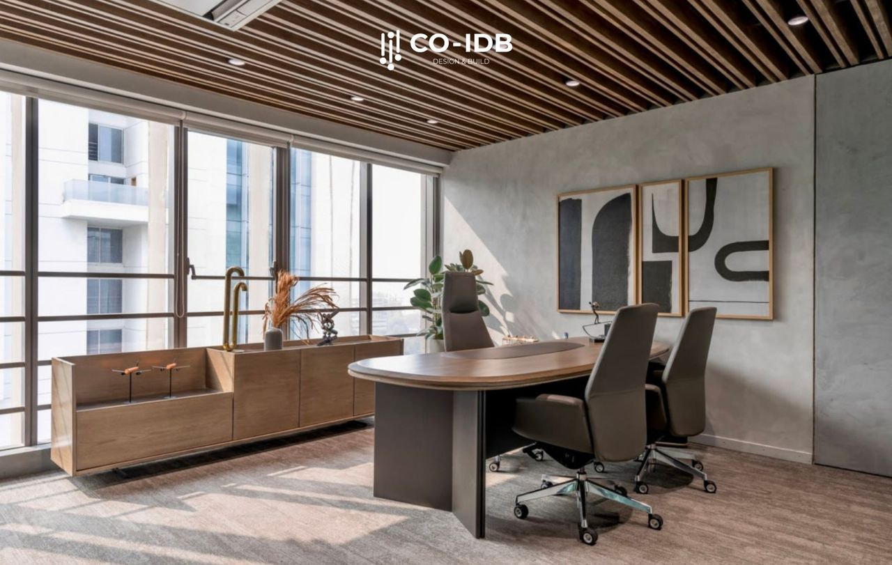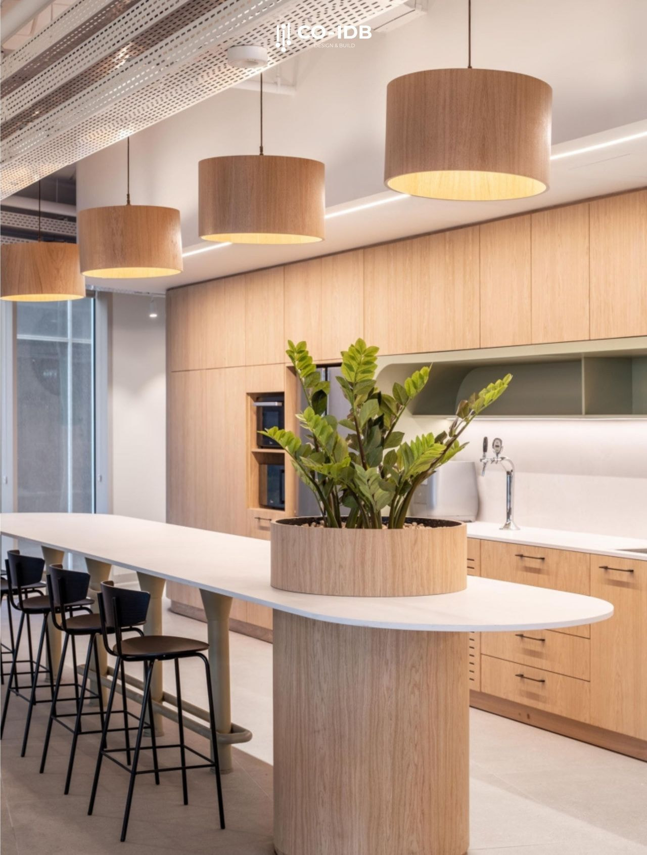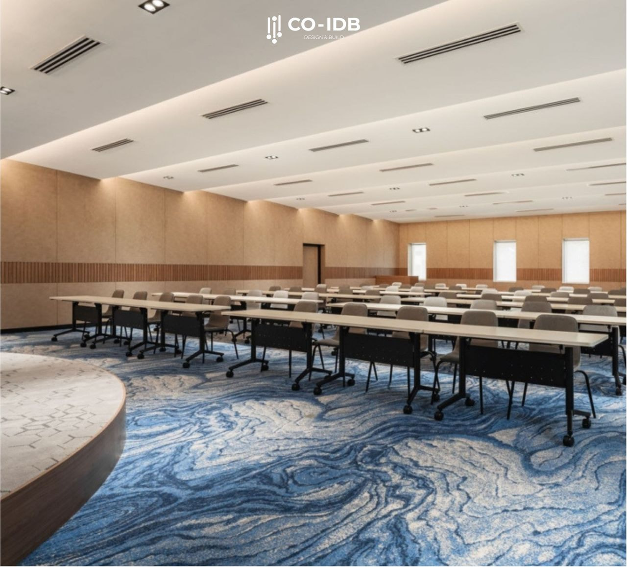 Vật liệu sử dụng tập trung vào sự bền vững, an toàn và dễ bảo trì: kính mờ tạo sự riêng tư mà không bí bách, gỗ công nghiệp phủ veneer chống ẩm đảm bảo độ bền lâu dài, sàn vinyl hoặc đá granite chống trượt ở các khu vực có lưu lượng lớn. Những chi tiết điểm nhấn thương hiệu như logo phát sáng tại sảnh, mảng tường đồ họa nhận diện, bảng chỉ dẫn thiết kế riêng và hệ thống đèn chiếu sáng định hướng được tích hợp khéo léo – vừa tăng nhận diện, vừa tạo sự dẫn dắt không gian mạch lạc.