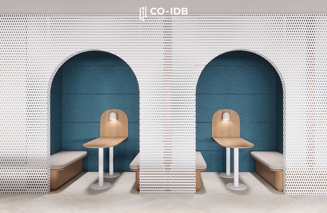Giải pháp thiết kế được đưa ra là tổ chức lại bố cục không gian theo trục giao thông mạch lạc – bắt đầu từ quầy lễ tân, đi qua sảnh giao dịch và kết thúc tại các khu vực làm việc nội bộ. Luồng di chuyển của khách hàng và nhân viên được tính toán tách biệt nhưng vẫn dễ kiểm soát. Không gian được mở rộng thị giác thông qua việc sử dụng vách kính, bố cục thông thoáng và các điểm nhấn thị giác rõ ràng, tạo nên một không gian gọn gàng, uy tín và giàu tính thương hiệu.