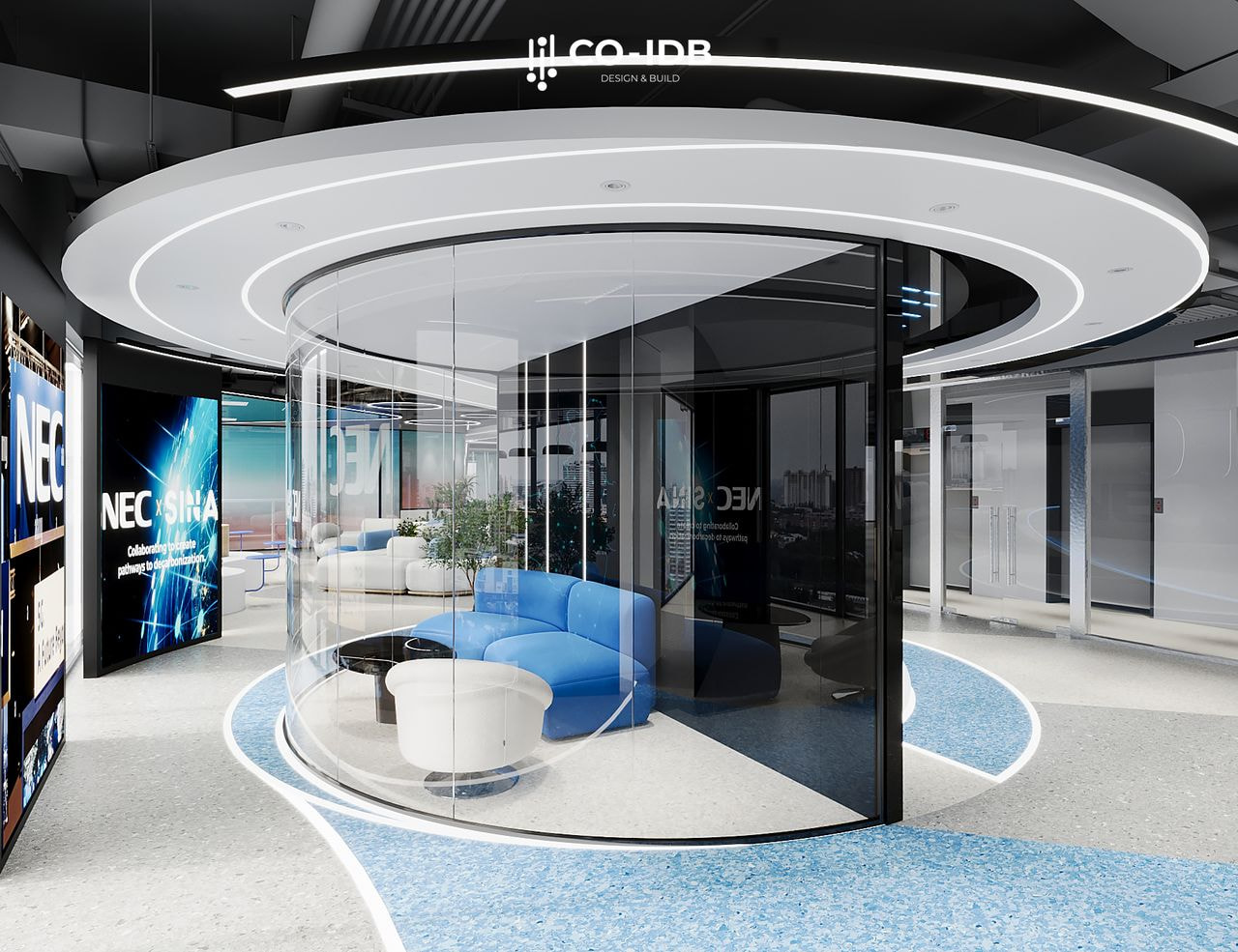 NEC wanted to upgrade its office space to match its status as an international technology corporation, but the original floor plan was fragmented, lacking natural light and making it difficult to optimize traffic flow. At the same time, the design team had to balance modern technology and employee friendliness.